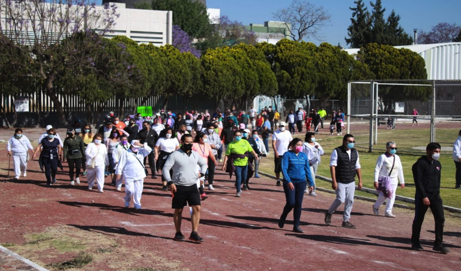 Ayer por la mañana decenas de personas asistieron a la Unidad Deportiva del Instituto Mexicano del Seguro Social (IMSS) en Querétaro, donde se llevó a cabo una activación física y caminata, actividades parte del triatlón PrevenIMSS “Brinca, corre y rueda”.