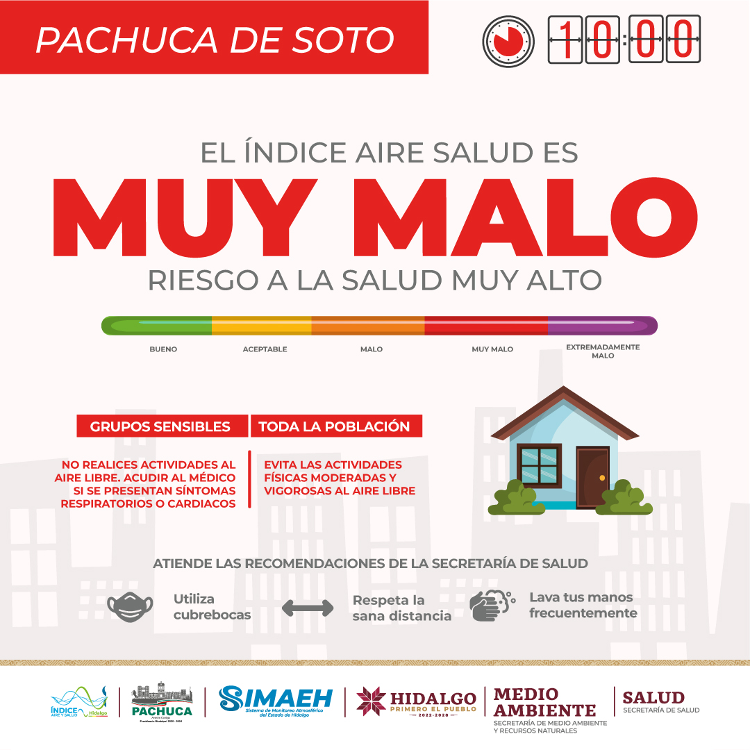 La Secretaría del Medio Ambiente y Recursos Naturales de Hidalgo (Semarnath) informó que, en su reporte de las 10:00 de la mañana, la calidad del aire en la capital hidalguense se encontraba índices rojos.