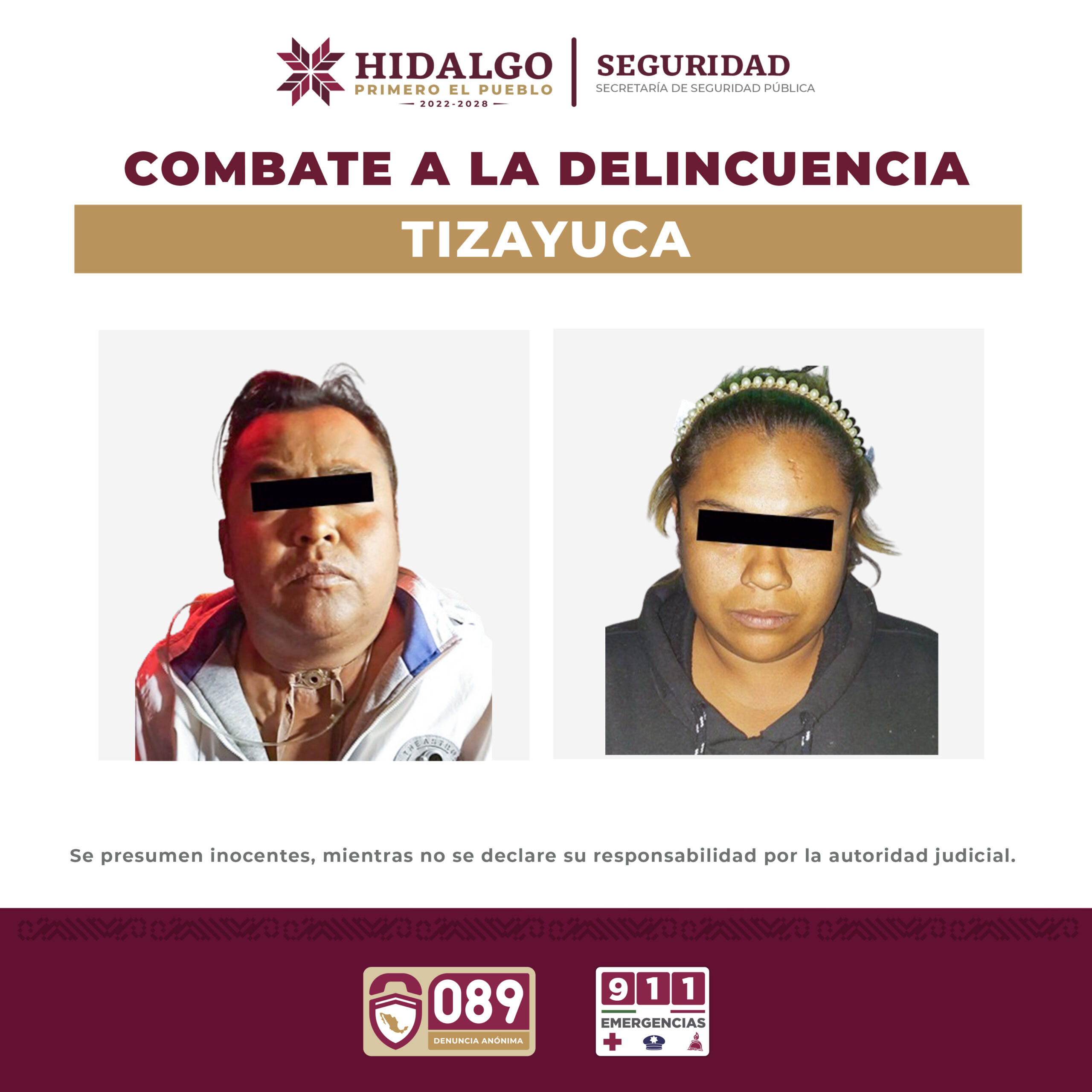 En un trabajo conjunto entre la Secretaría de Seguridad Pública (SSPH) y la Procuraduría General de Justicia de Hidalgo (PGJEH), se logró la captura de dos personas relacionadas con el narcomenudeo en el municipio de Tizayuca.
