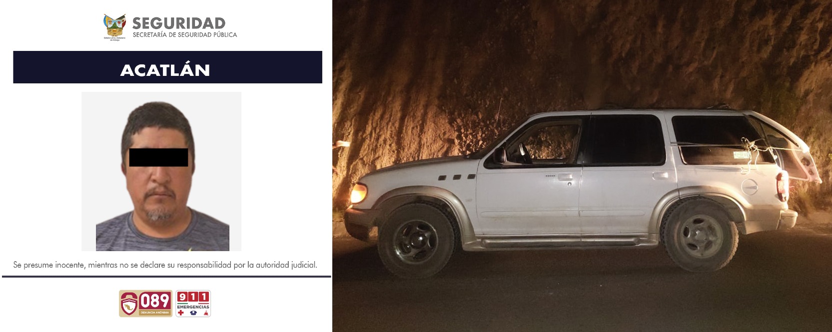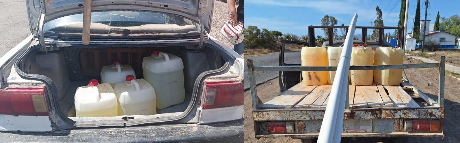 El primer hecho se dio en la comunidad de Alcholoya del municipio de Acatlán, donde los elementos de seguridad registraron una camioneta Nissan que llevaba cuatro garrafones con capacidad de 50 litros, estos llenos de hidrocarburo, donde el conductor no pudo especificar de donde los obtuvo por lo que fue arrestado.