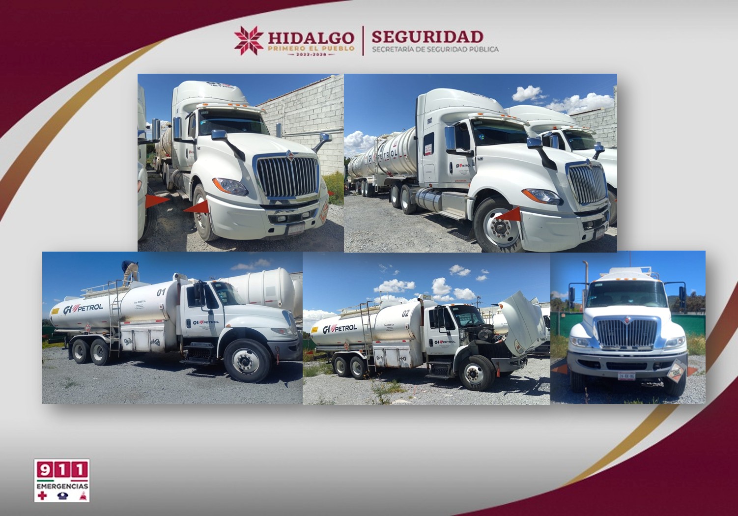 En el lugar se localizaron dos tractocamiones doble remolque, seis remolques tipo salchicha y tres tractocamiones tipo pipa, estos últimos con reporte de robo vigente. Además, se aseguraron 220 dosis de hierba con características de marihuana y 10 dosis de posible droga sintética tipo “cristal”.