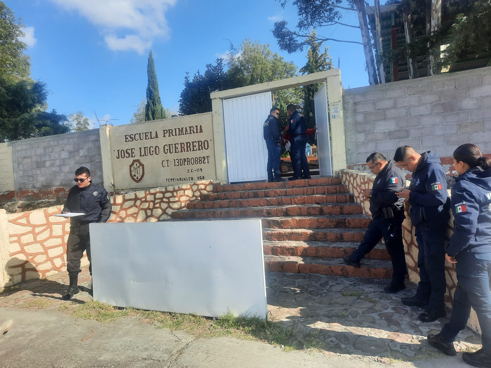 El parte indica que tras recibir el reporte del centro de comando se trasladaron a la primaria José Lugo Guerrero, ubicada en la localidad Tepeyahualco, donde comprobaron el hecho. Sobre una barda que da hacia la avenida Revolución se leía el mensaje, el cual estaba firmado por un grupo delictivo.