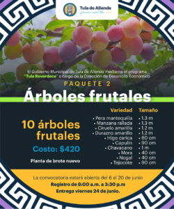 Con la finalidad de apoyar en la economía de las familias, el Ayuntamiento Municipal de Tula de Allende dio inicio al programa “Tula Reverdece” el cual se encuentra a cargo de la Dirección de Desarrollo Económico. El programa tiene como objetivo brindar diferentes paquetes de arboles frutales y plantas de distintos tipos.
