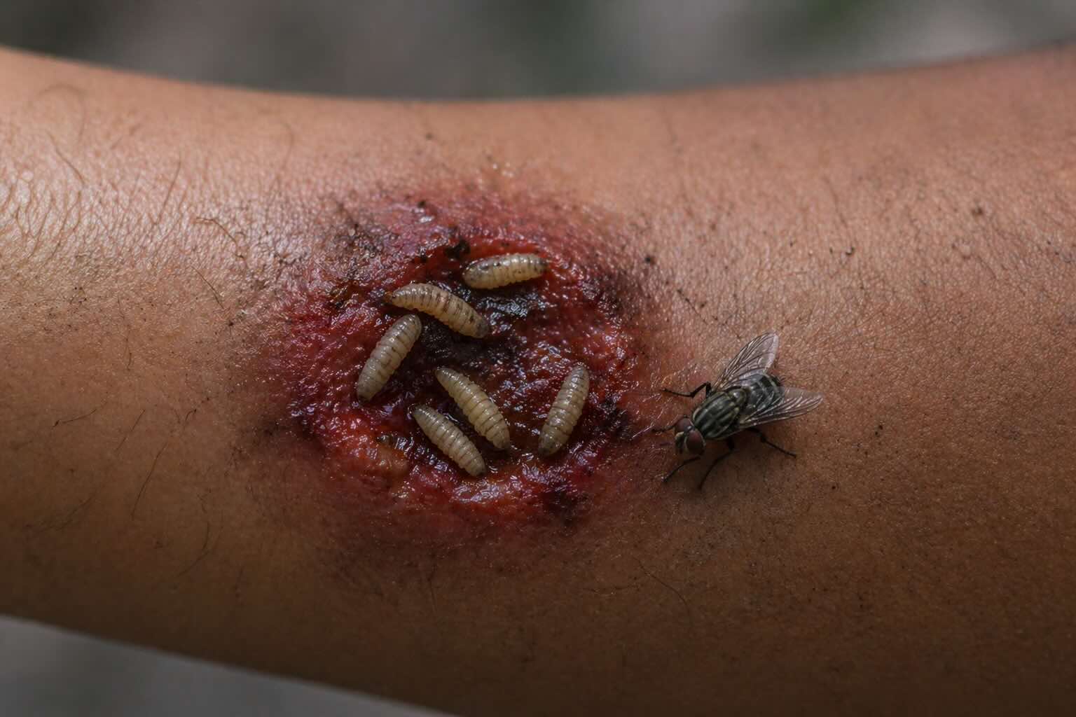 Los síntomas incluyen heridas que no cicatrizan, presencia de larvas, dolor intenso, sensación de movimiento en la zona afectada, mal olor o infección.