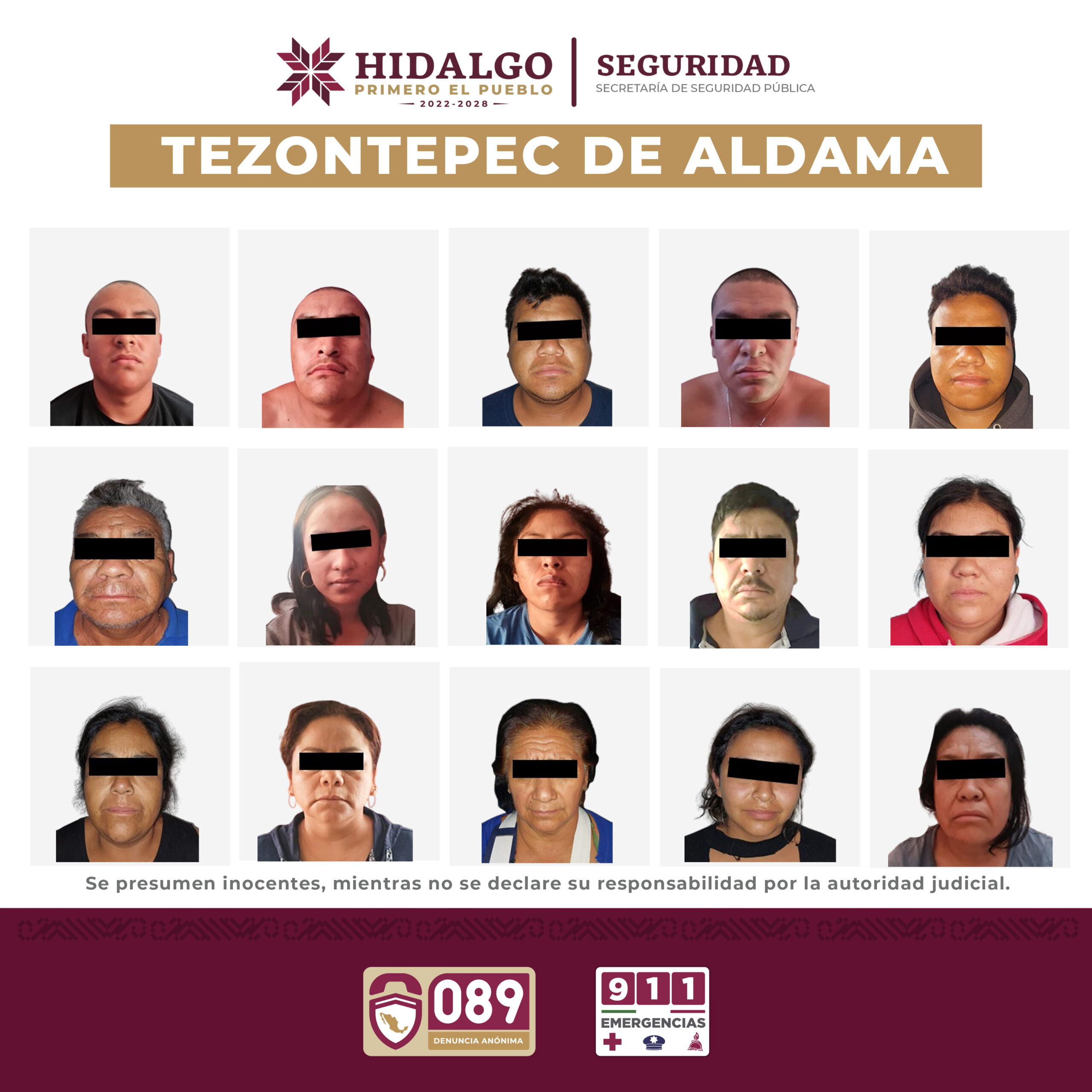 Al menos 15 personas presuntamente relacionadas con actividades delictivas, fueron aseguradas por elementos adscritos a la Secretaría de Seguridad Pública de Hidalgo (SSPH) durante la ejecución de un operativo simultáneo en el municipio de Tezontepec de Aldama.