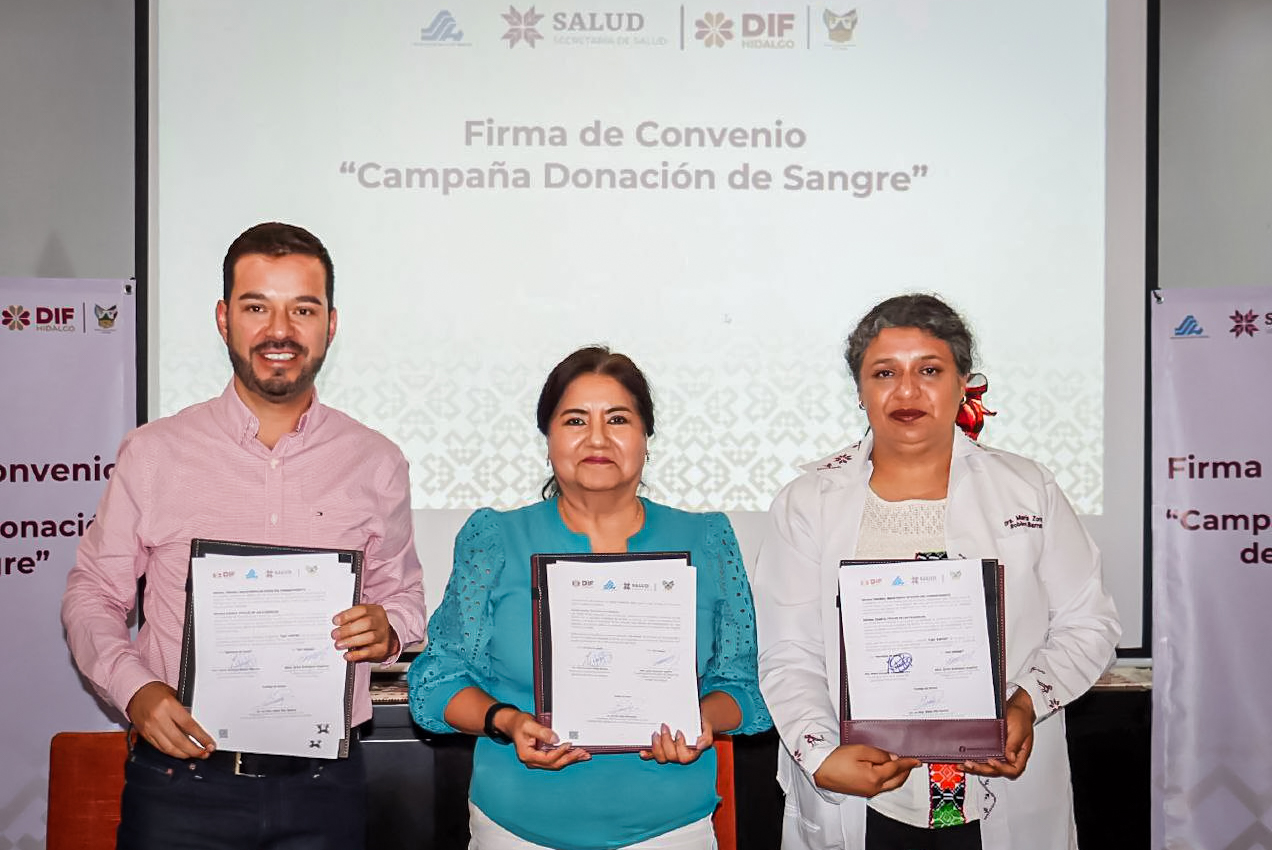 Con la firma de un convenio de colaboración entre el Sistema DIF Hidalgo y la Secretaría de Salud estatal, se incrementará la disponibilidad de hemoderivados (sangre, plaquetas y plasma) para una cantidad mayor de pacientes del Hospital del Niño DIF.
