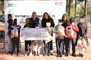El presidente municipal Sergio Baños Rubio y la presidenta del Sistema DIF Pachuca, Bárbara Montaño Sánchez Mejorada, entregaron 836 Becas W-15 a niñas y niños de educación primaria.