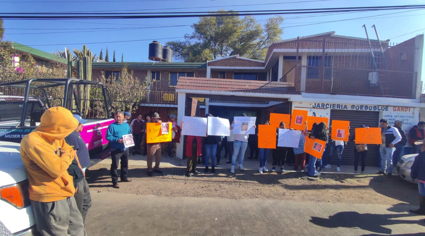 Familiares, amigos y vecinos de Edith, arribaron con pancartas a la casa del presunto feminicida para exigir justicia a autoridades municipales y estatales.
