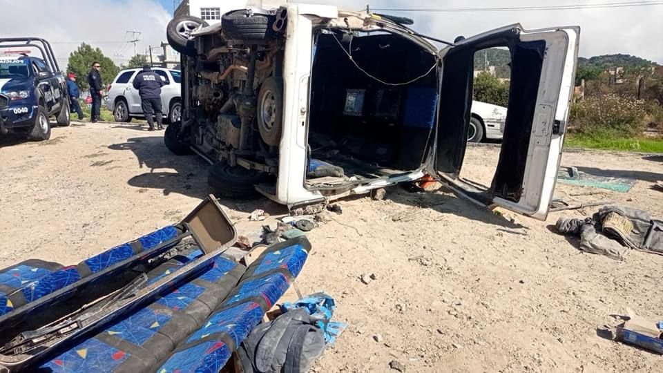 Al menos 11 pasajeros resultaron con lesiones graves, luego de que una colectiva volcó sobre la carretera Apan-Tepeapulco.