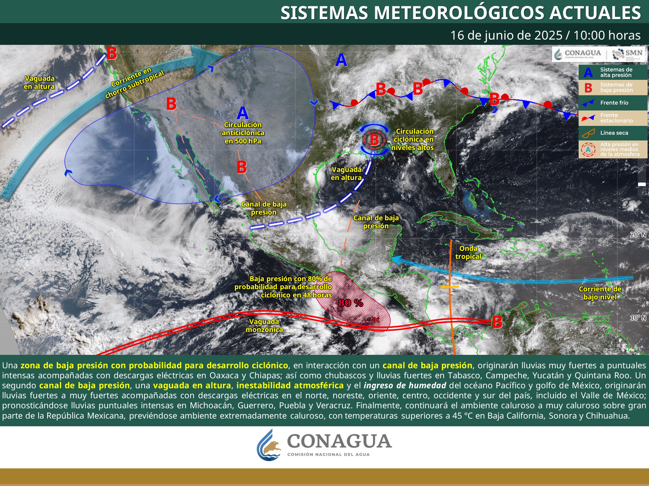 De acuerdo con el comunicado emitido por la Comisión Nacional de Agua (Conagua), debido a la onda tropical número 3, las lluvias seguirán vigentes en varios estados de la República Mexicana.